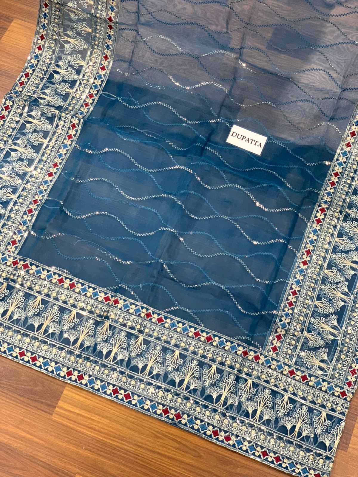 ✔️ Organza dupatta with 4-side embroidered spangle border – pure elegance