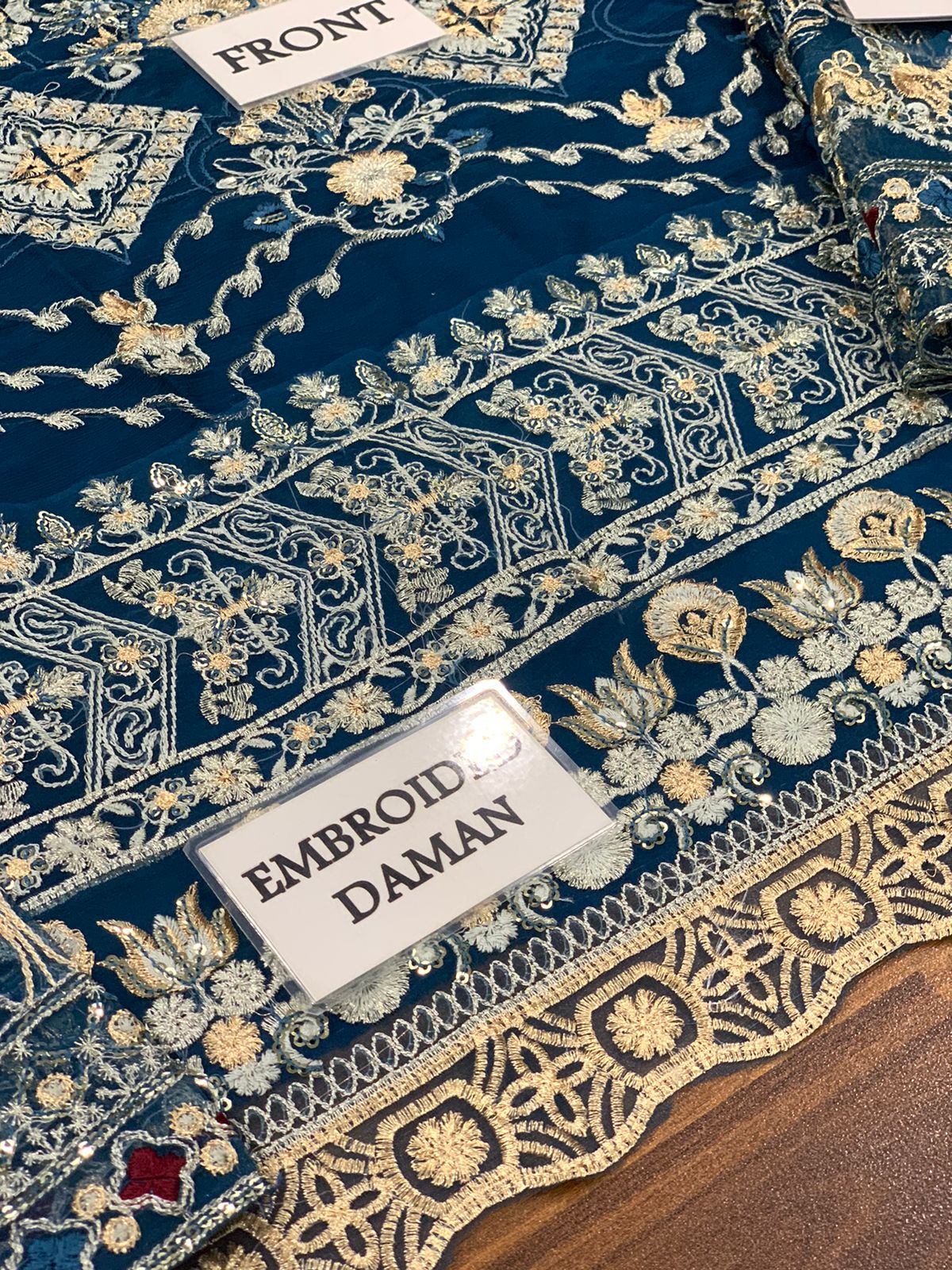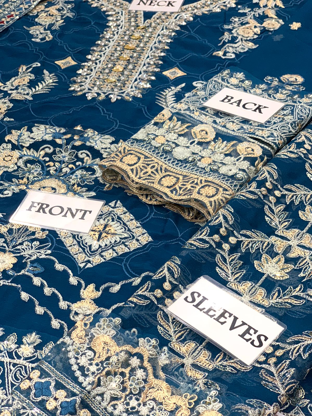 ✔️ Fully heavy embroidered chiffon shirt with intricate spangle work and delicate hand adda embellishment